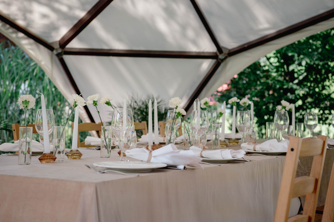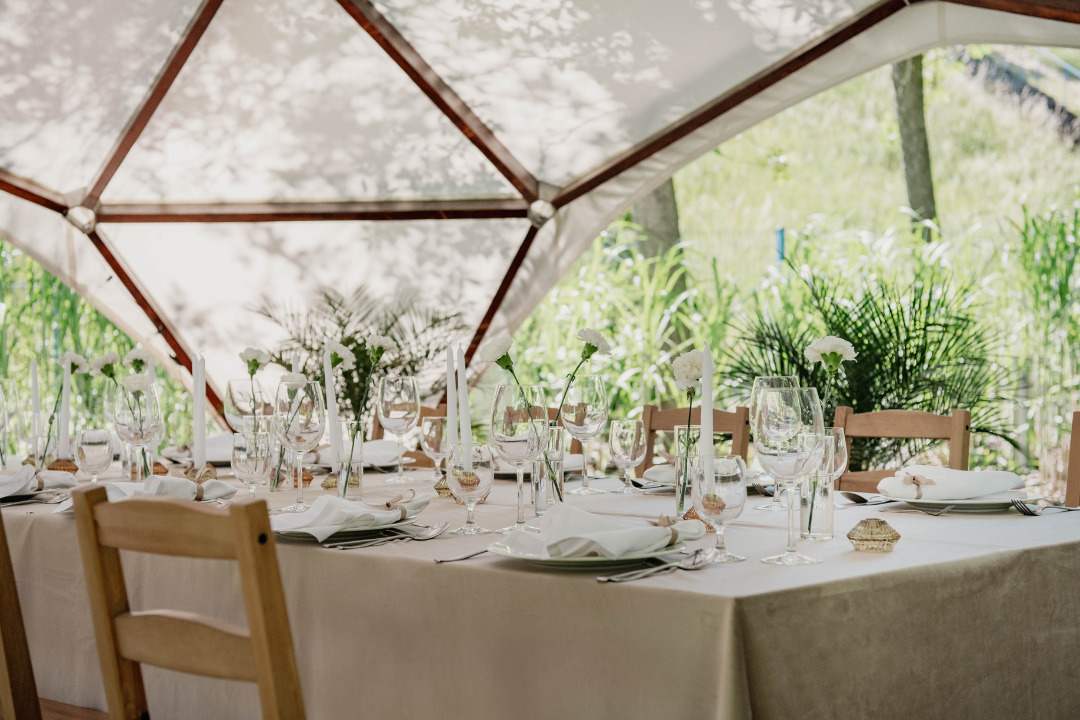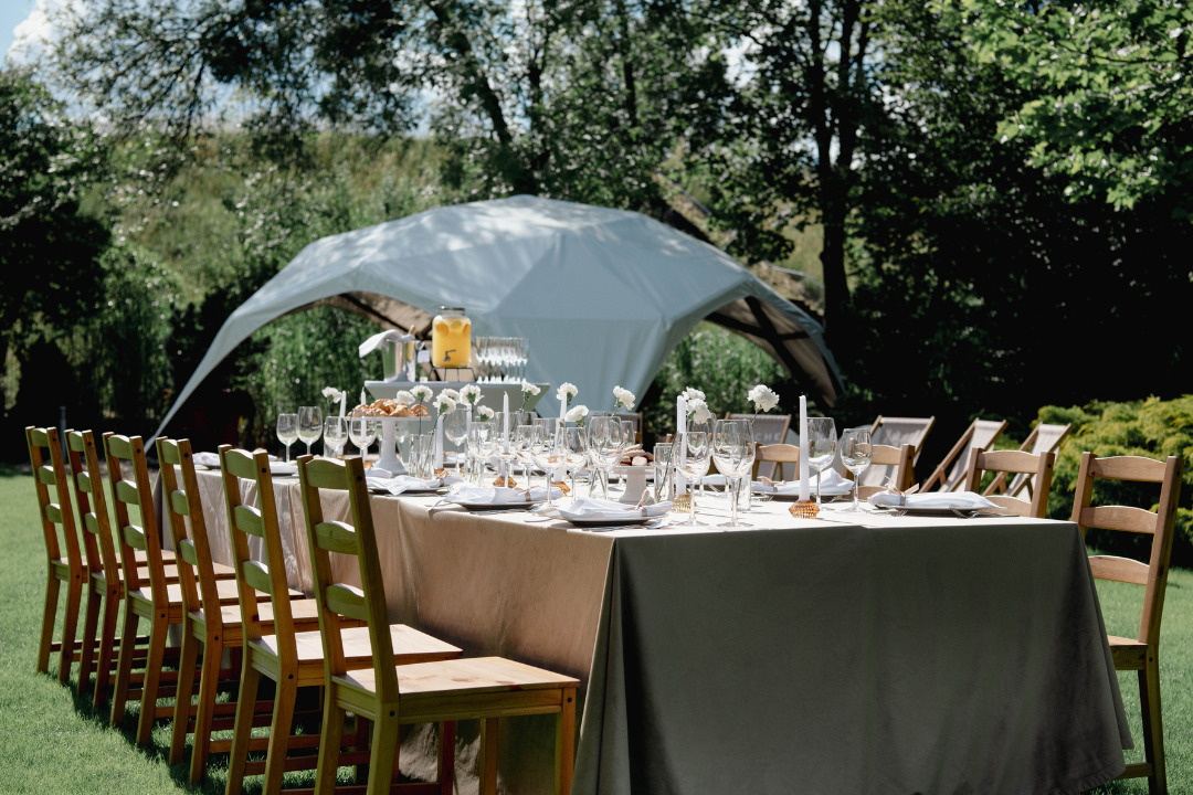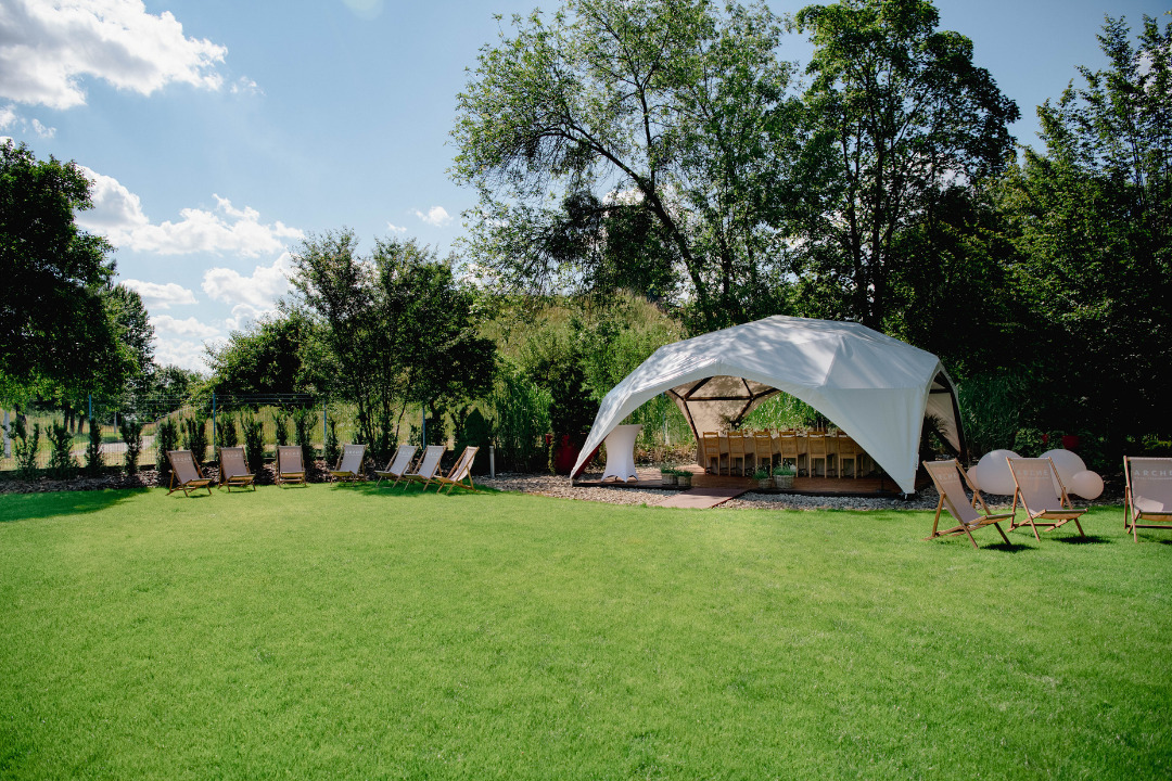 Zapraszamy do organizacji przyjęć rodzinnych w Częstochowie w naszej malowniczej, zielonej przestrzeni. Oferujemy elegancki namiot ogrodowy z klimatycznym oświetleniem, który tworzy idealną atmosferę na kameralne przyjęcia okolicznościowe.